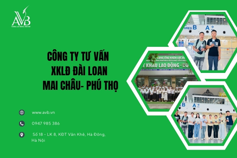 Công ty Cổ phần AVB Quốc tế là đơn vị được Bộ Lao động – Thương binh & Xã hội cấp phép chính thức trong lĩnh vực đưa người lao động đi làm việc có thời hạn tại nước ngoài. Với hơn 20 năm kinh nghiệm, AVB Quốc tế đã đồng hành cùng hàng nghìn lao động Việt Nam sang Đài Loan làm việc và thành công.