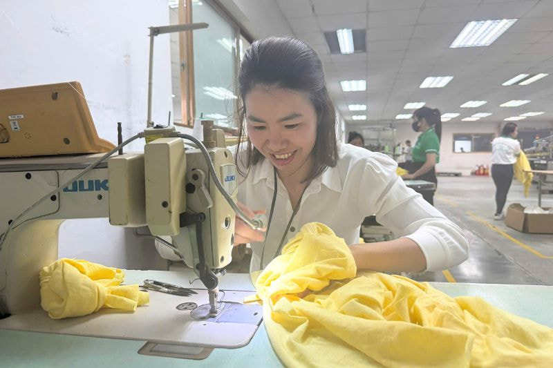 Công việc: may chuyền, hoàn thiện quần áo, kiểm hàng